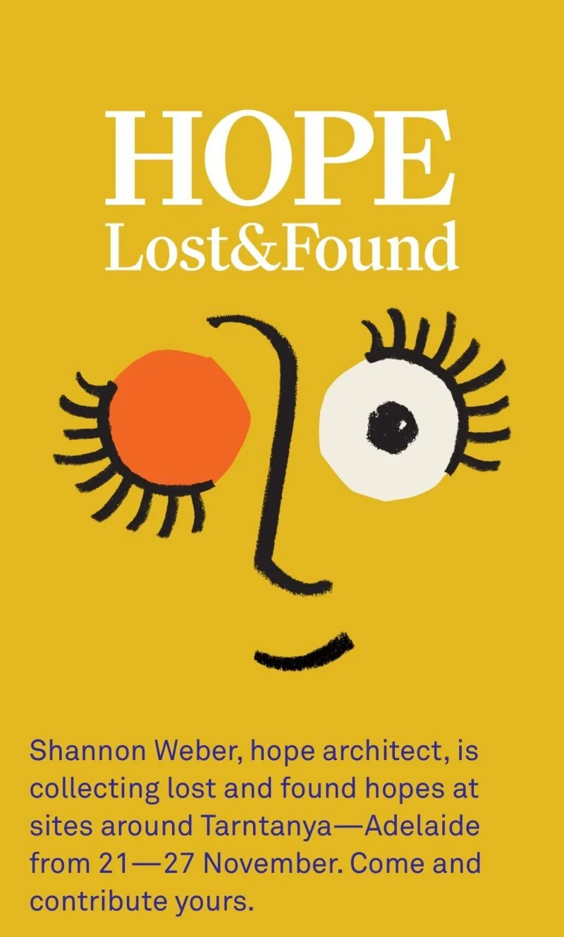 I've been in conversation with so many folks (on the beach, in between conference talks, at the market, over dinner) thinking about what we've lost and what helps us stay tethered. I'm delighted to be gathering this community wisdom and be able to share lessons learned the the final Hope: Lost & Found celebration. If you are in Tarntanya-Adelaide, please join us!