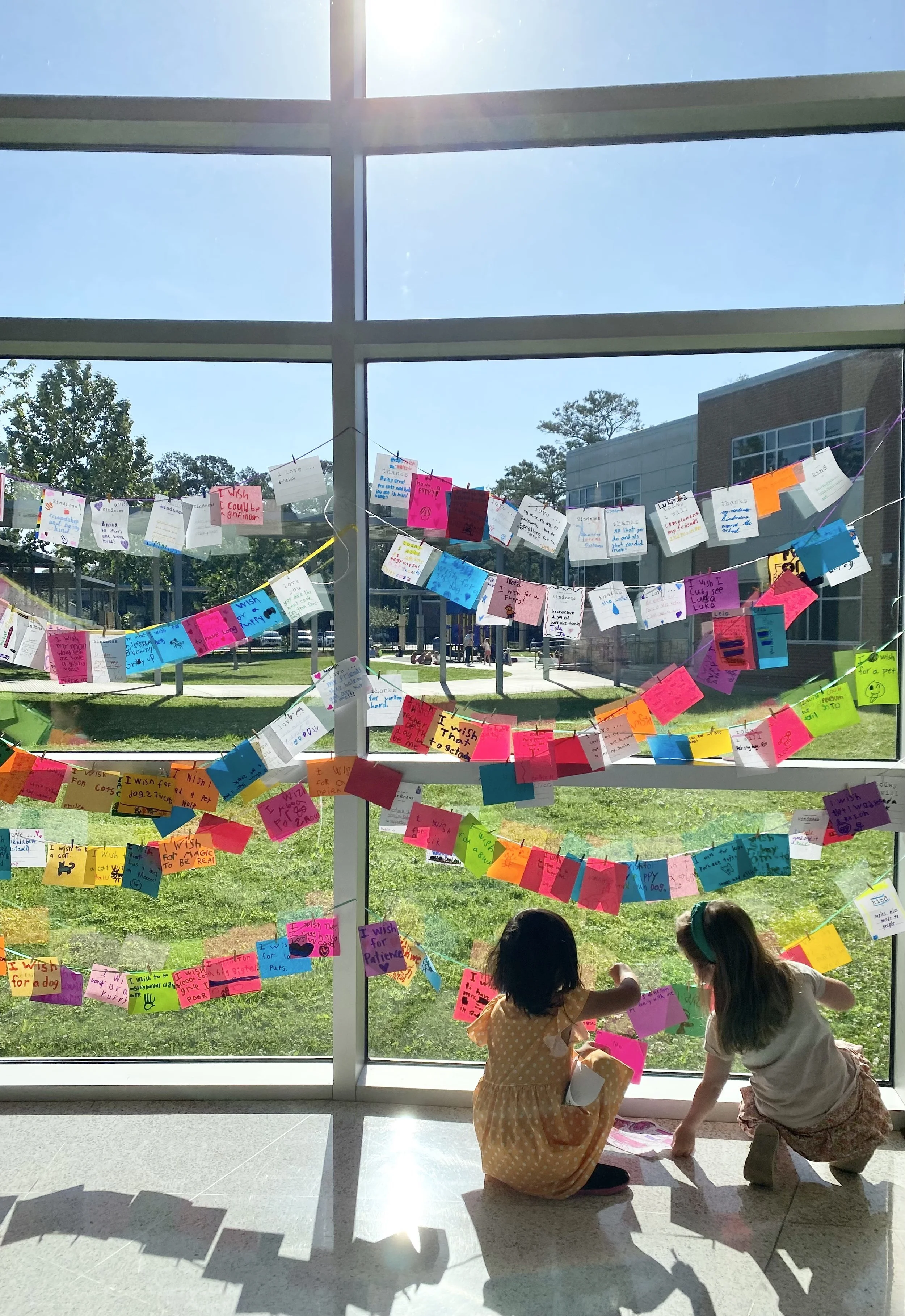 Spearheaded by art teacher Kim Lamb, students are provided the LoveYou2 love note templates and invited to add their notes to the window display in the school’s common area.